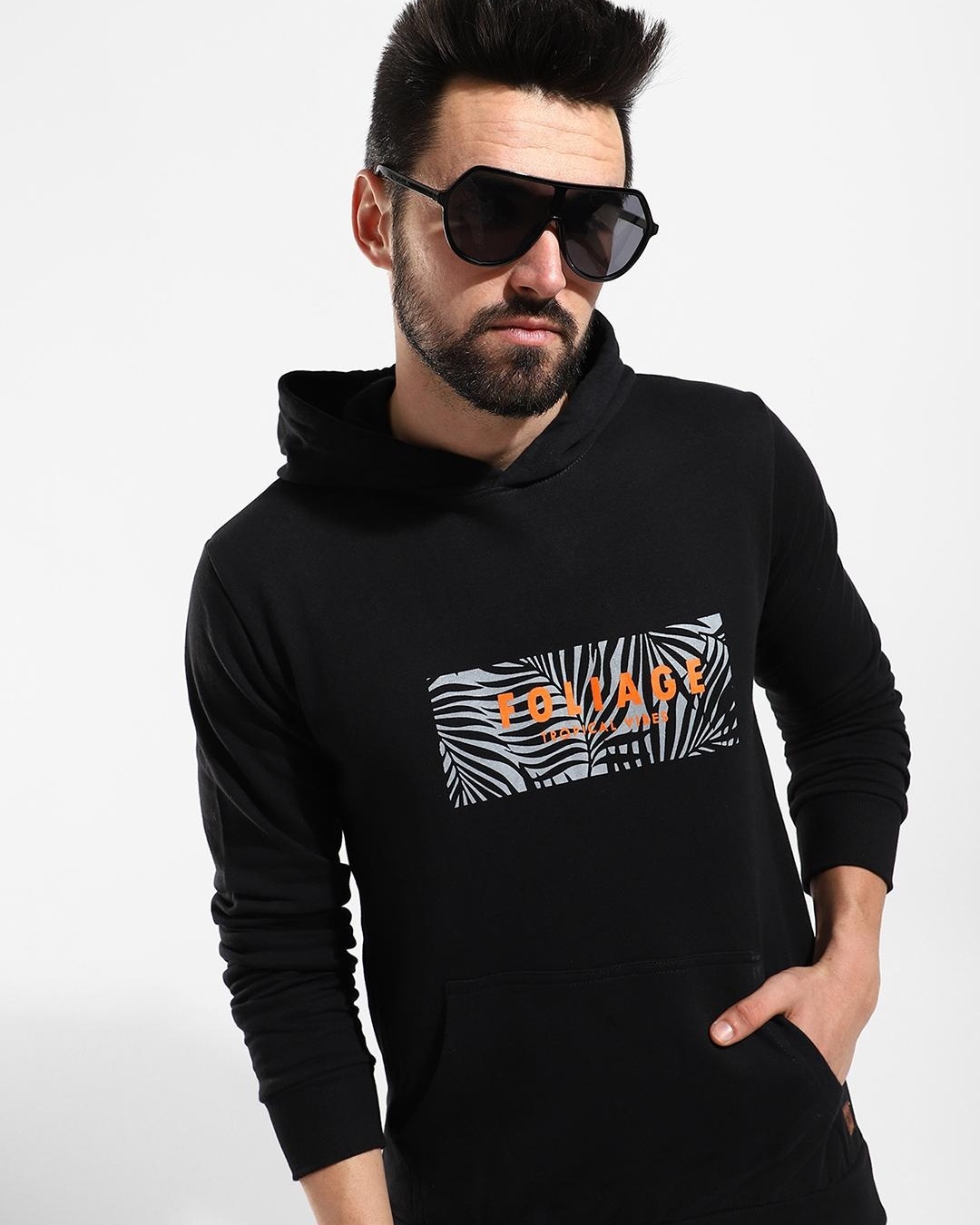 Men's Black Foliage Printed Hoodie