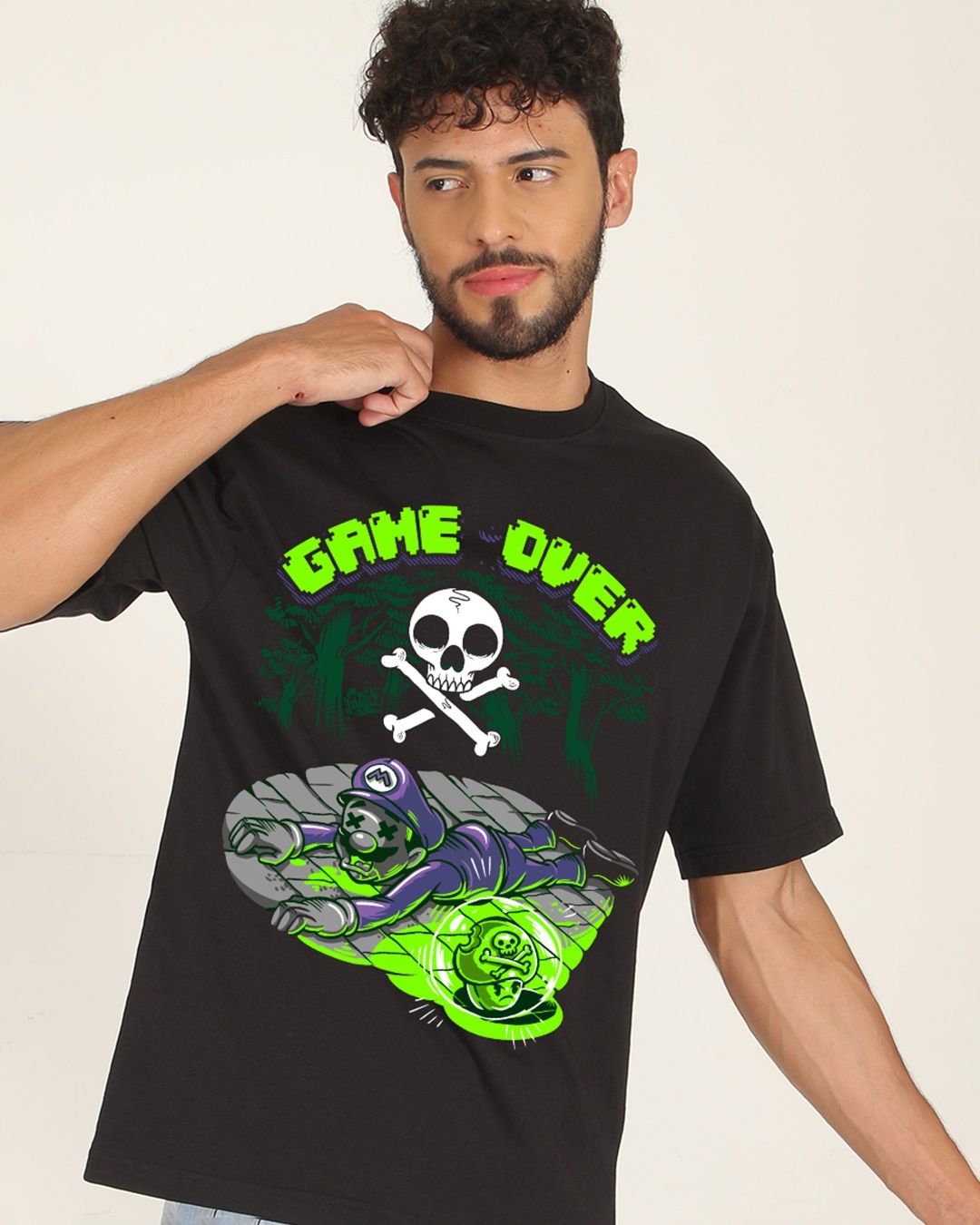 Men's Black Game Over Graphic Printed Oversized T-shirt