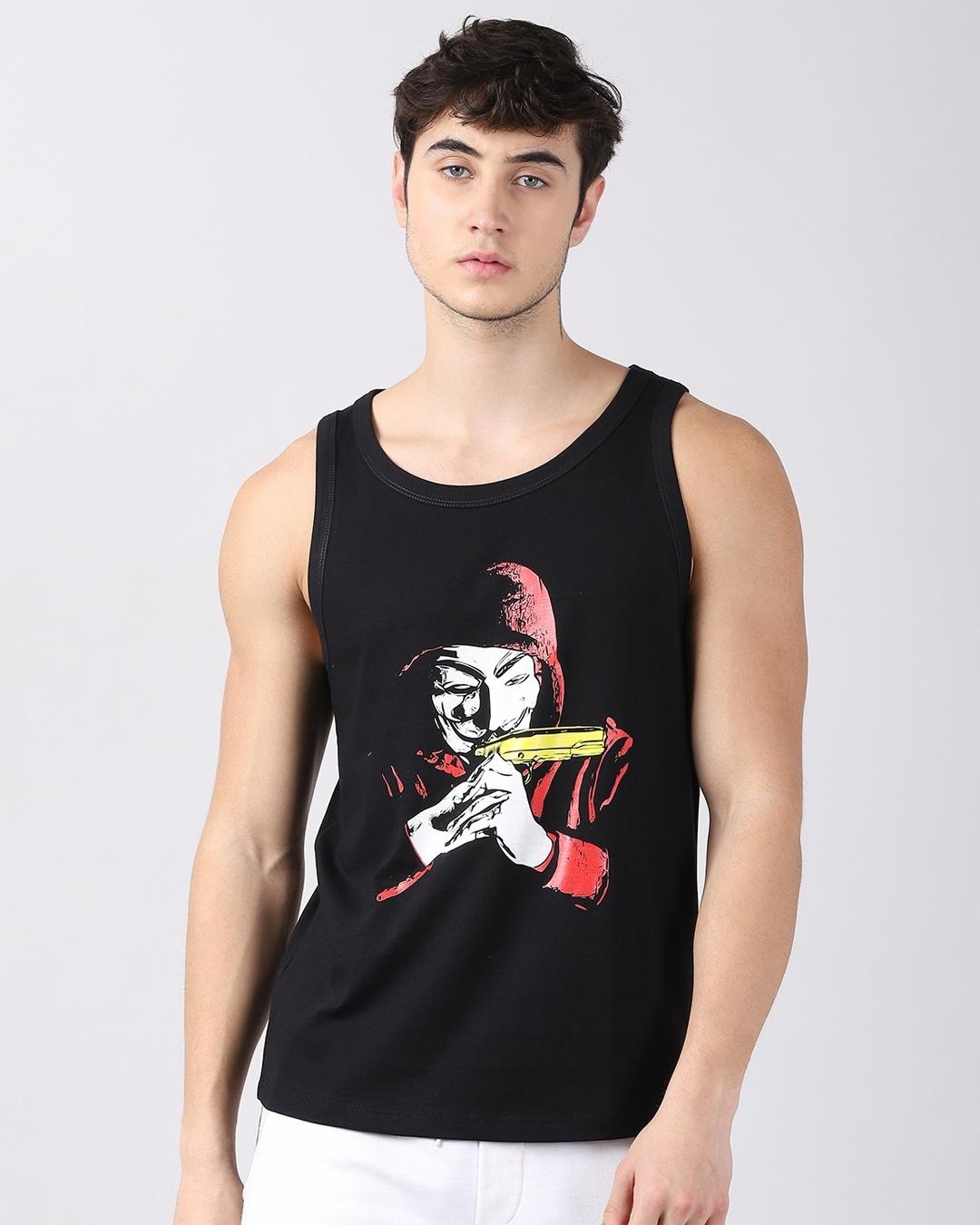 Men's Black Graphic Printed Vest