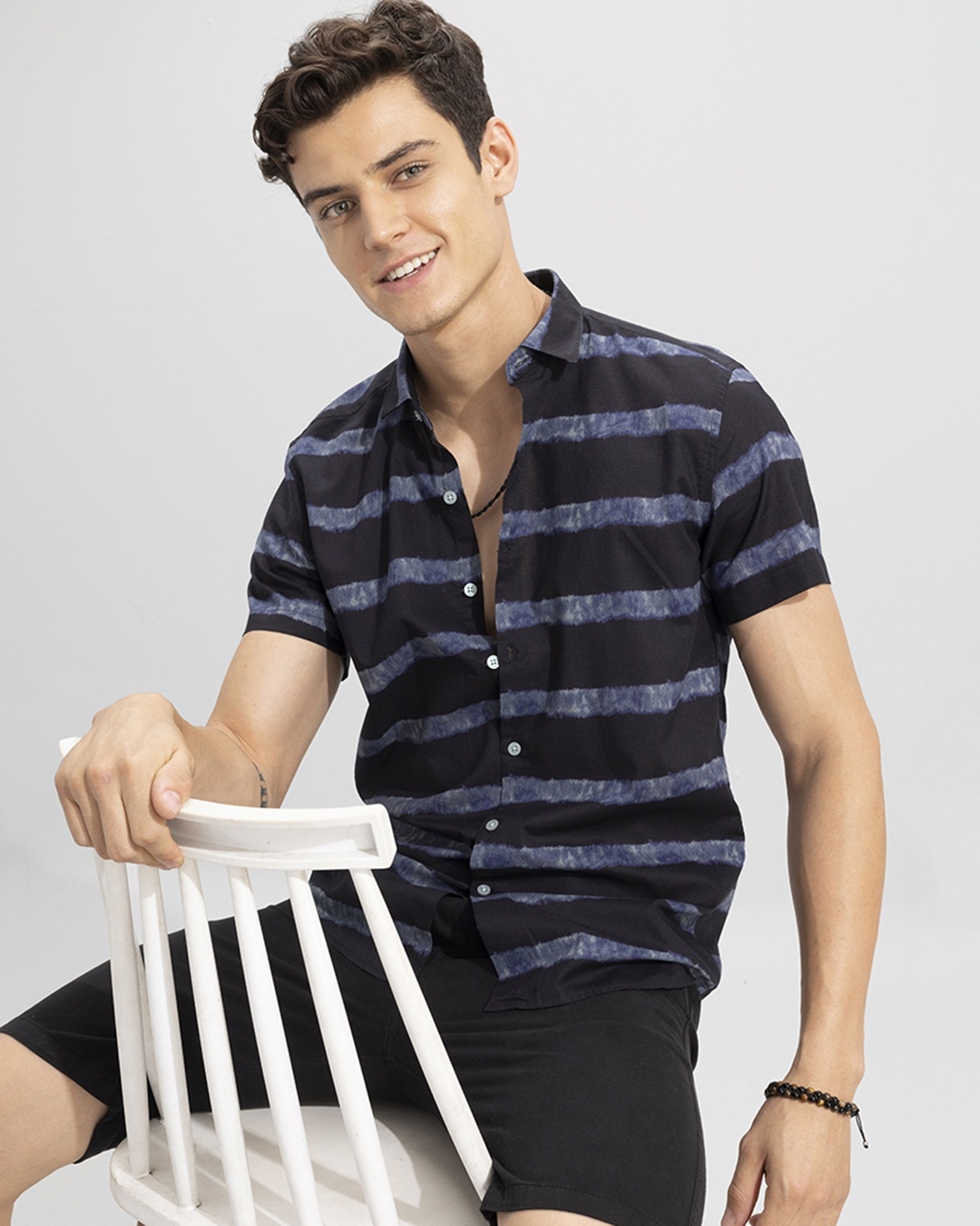 Men's Black & Grey Striped Slim Fit Shirt