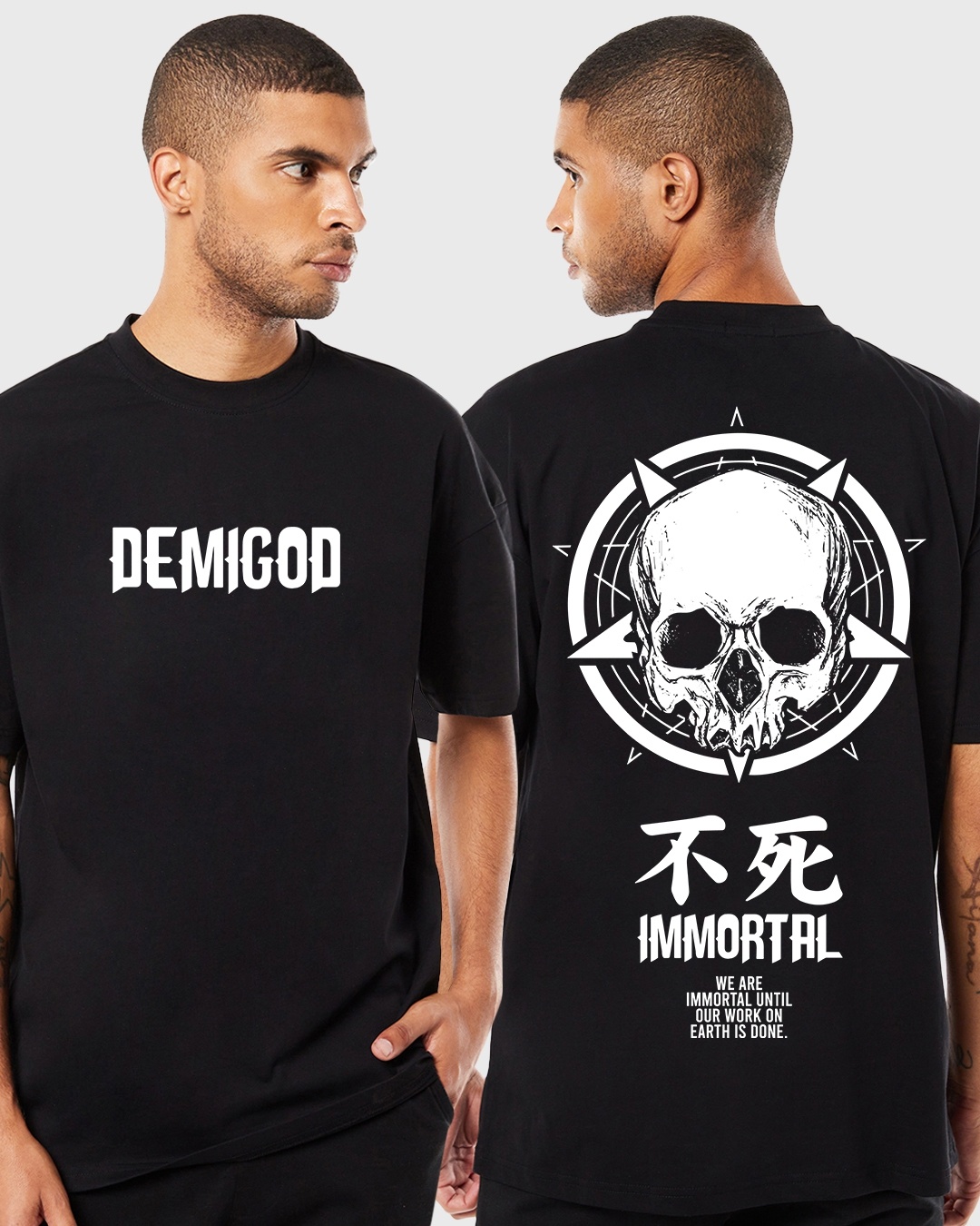 Men's Black Immortal Graphic Printed Oversized T-shirt