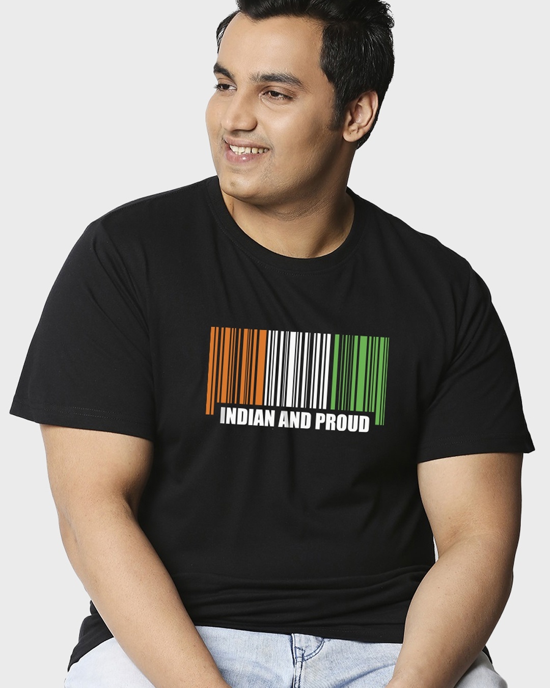 Men's Black Indian & Proud Typography Plus Size T-shirt