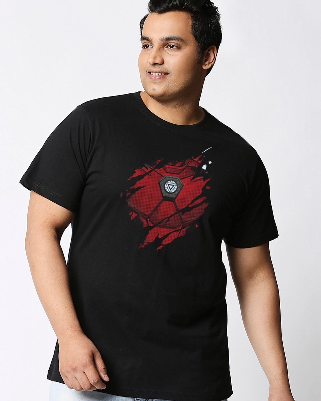 Men's Black Iron Man Of War Graphic Printed Plus Size T-shirt