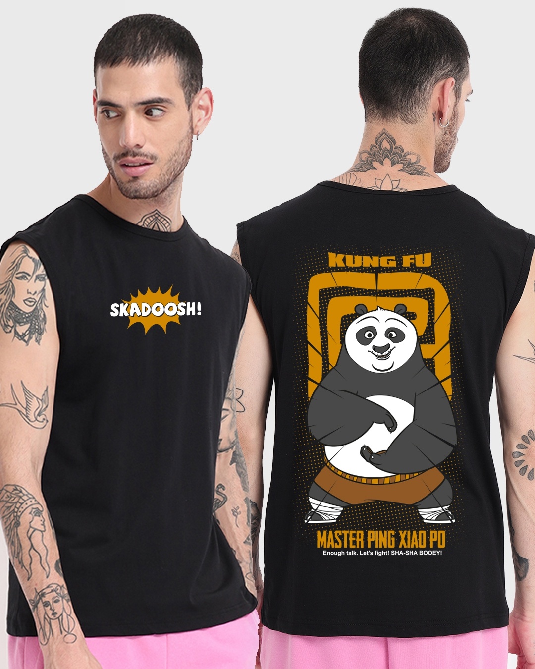 Men's Black Kung Fu Panda Graphic Printed Oversized Vest