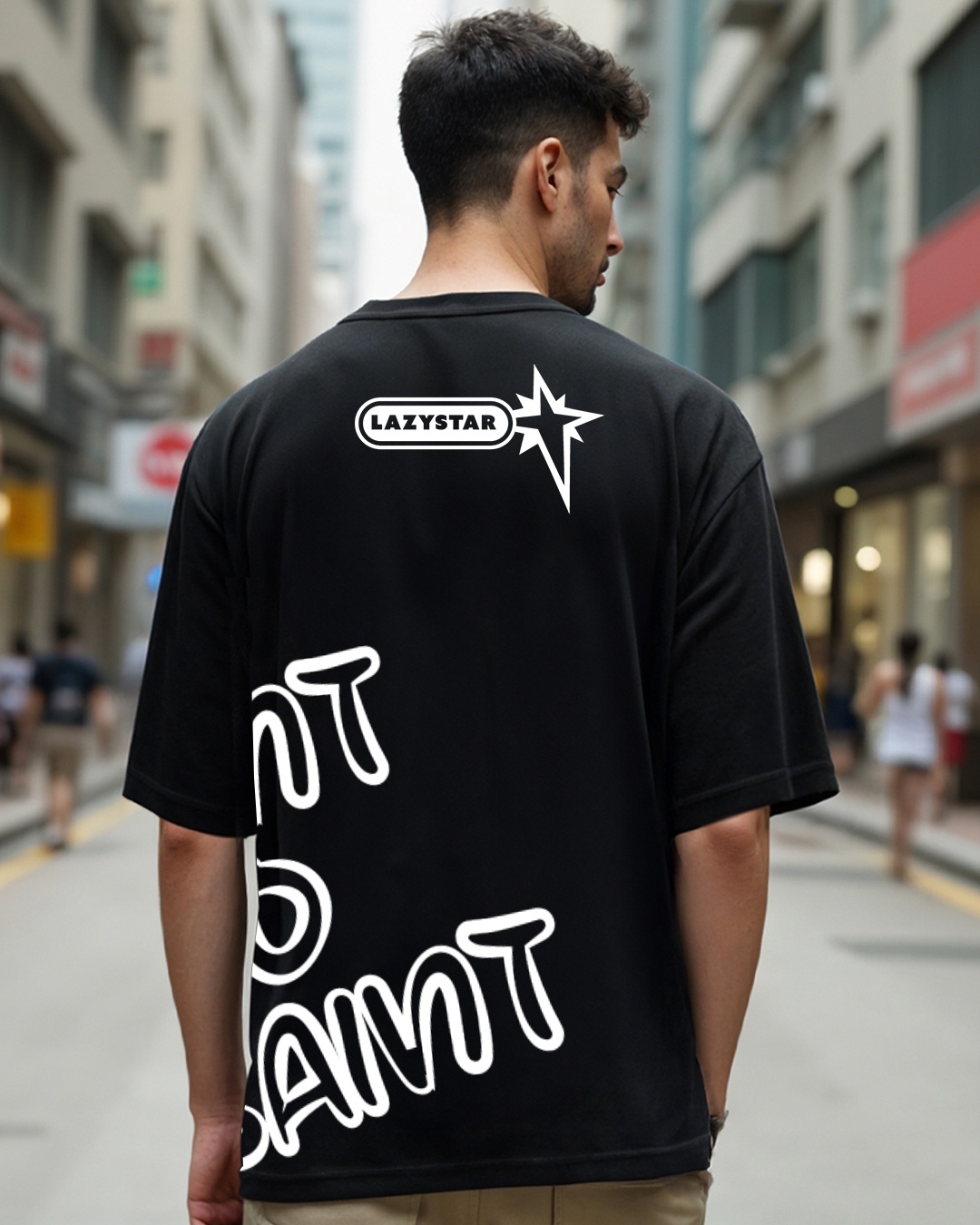 Men's Black Lazystar Graphic Printed Oversized T-shirt