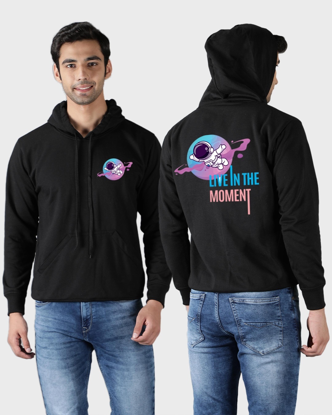 Men's Black Live In The Moment Graphic Printed Hoodie