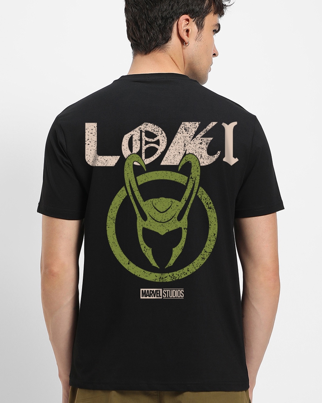 Men's Black Loki Grunge Graphic Printed T-shirt