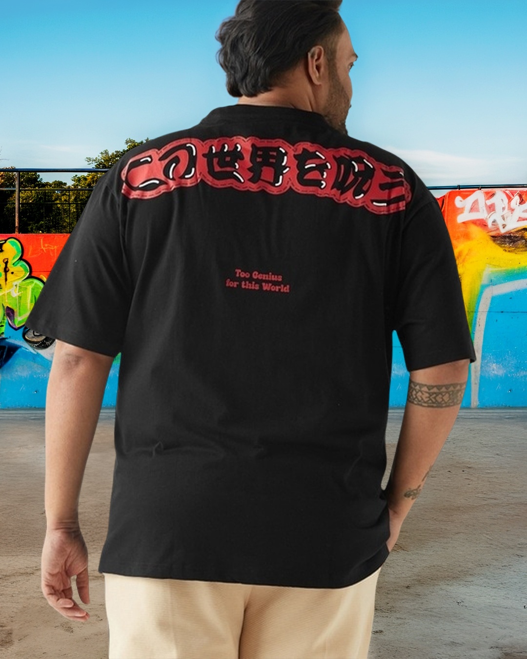 Men's Black Main Character Typography Oversized Plus Size T-shirt