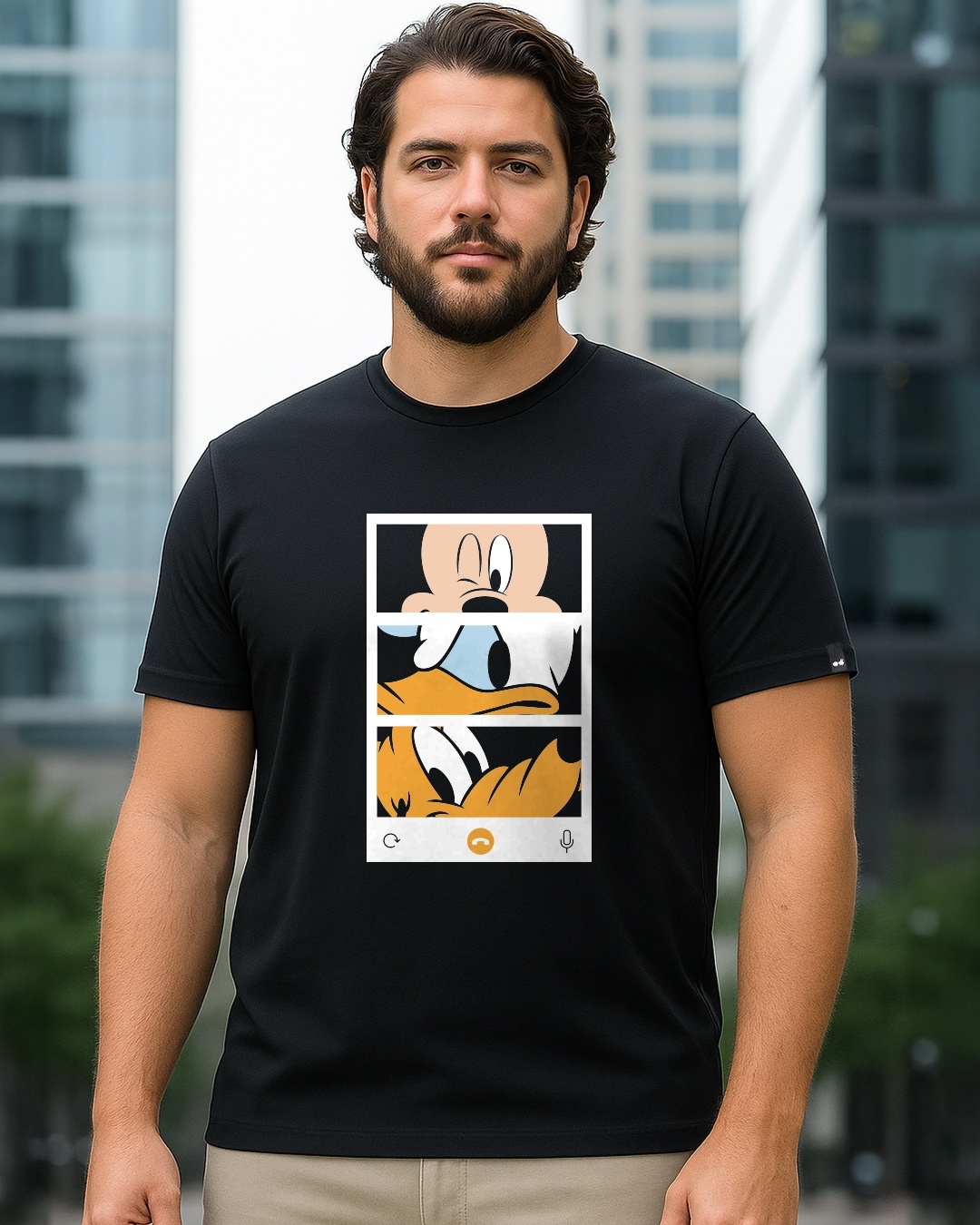 Men's Black Mickey Trio Call (DL) Graphic Printed Plus Size T-shirt