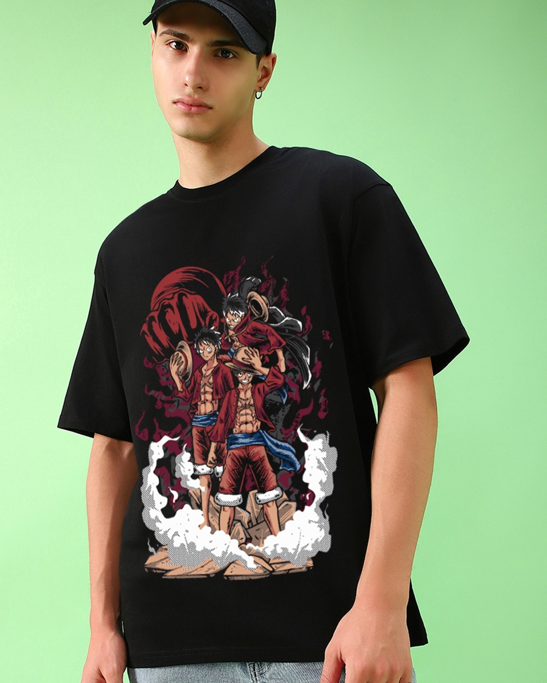 Men's Black Mugiwara Graphic Printed Oversized T-shirt