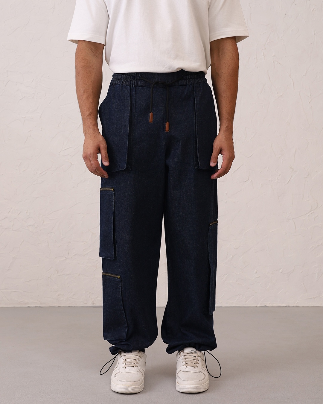 Men's Navy Blue Oversized Cargo Parachute Pants