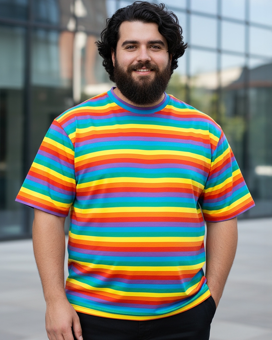 Men's Pride Multicolor Striped Loose Fit Plus Size T-shirt