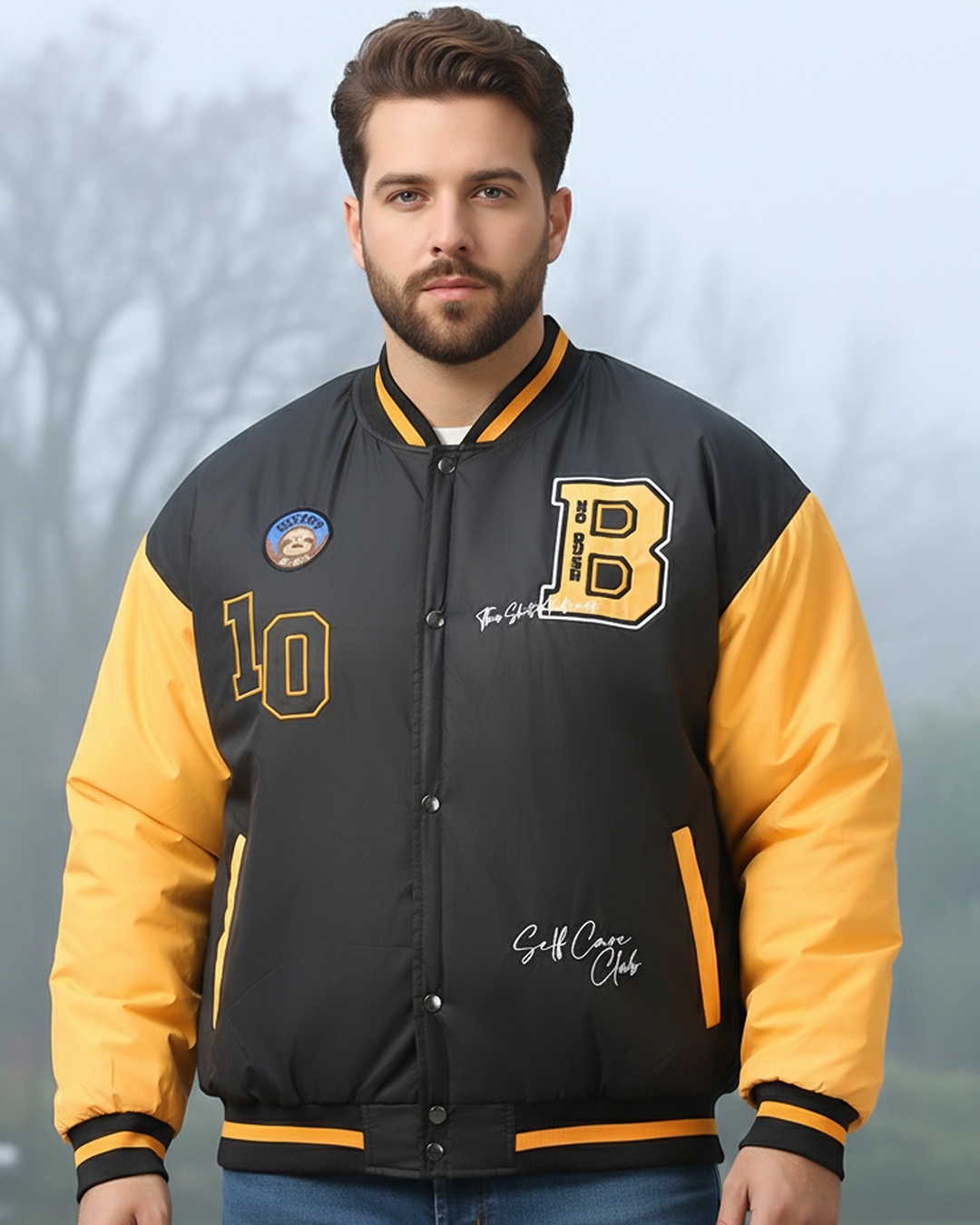 Men's Black Graphic Printed Oversized Plus Size Jacket