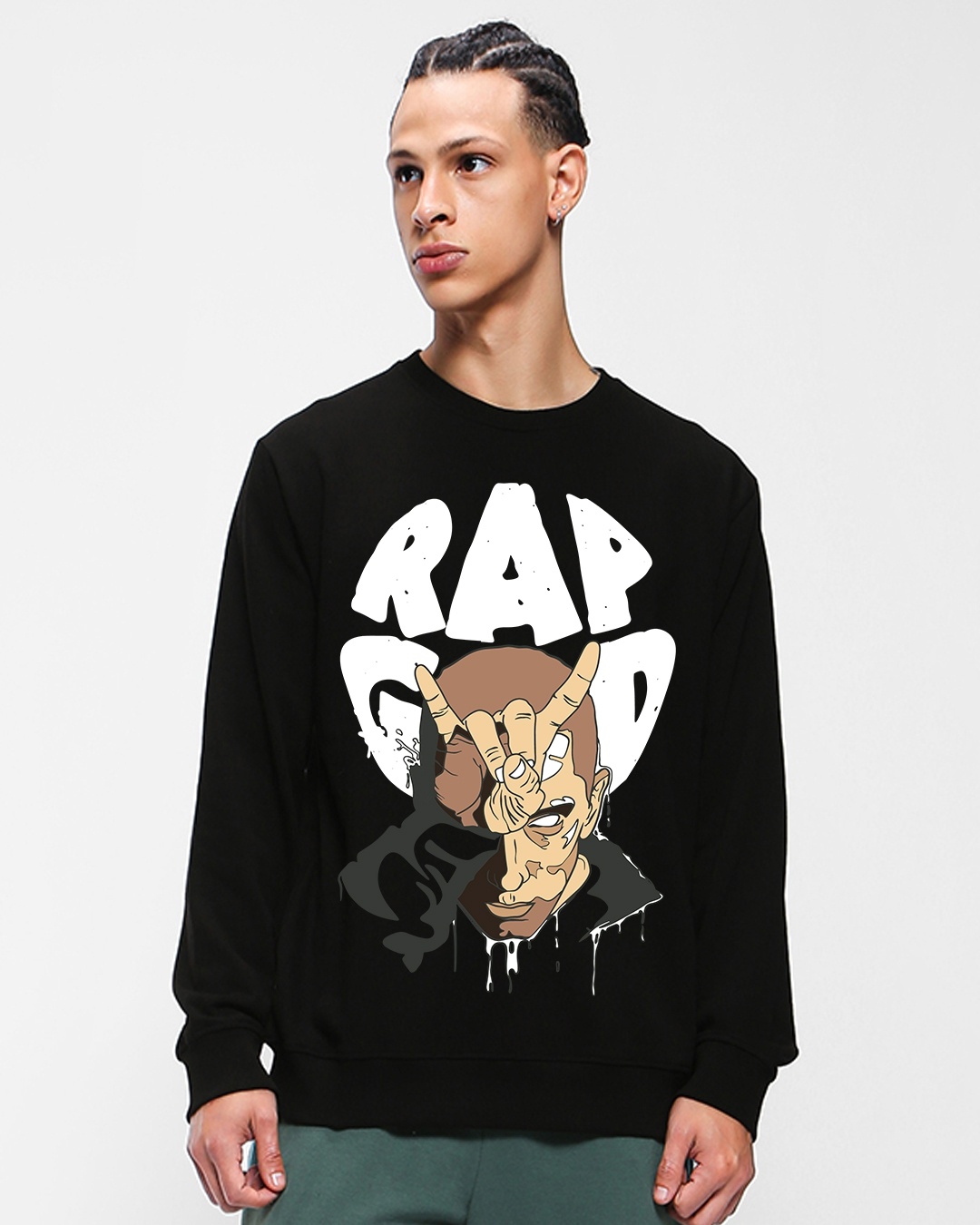 Men's Black Rap God Graphic Printed Sweatshirt