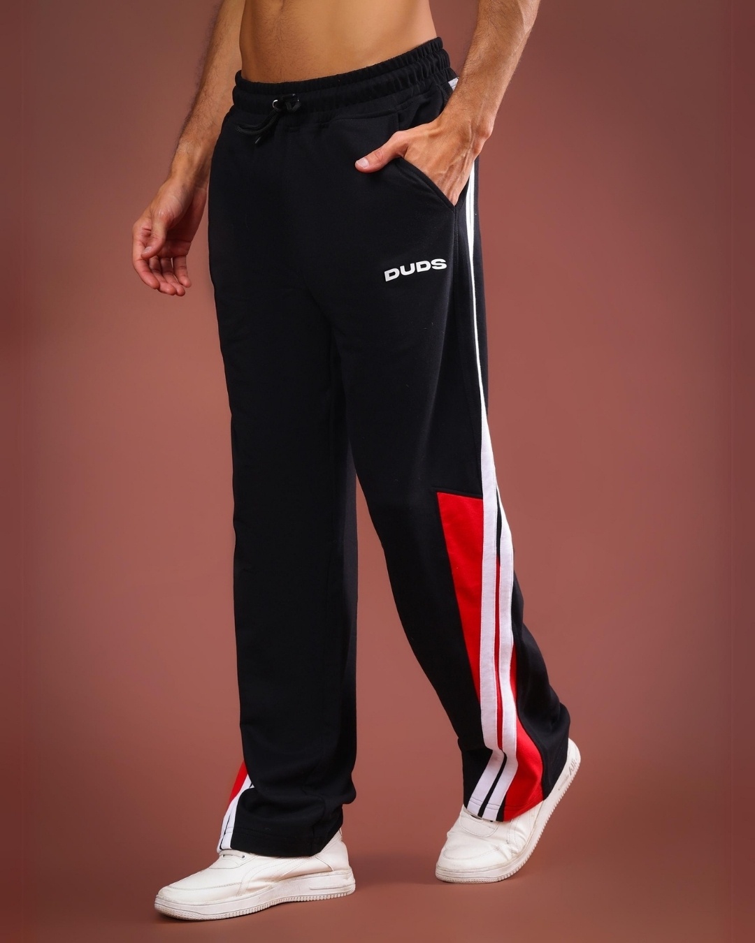 Men's Black & Red Side Panel Relaxed Fit Trackpants