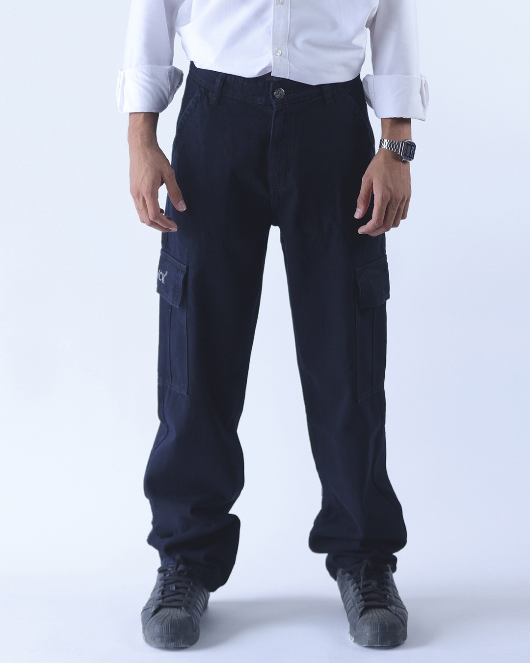 Men's Black Relaxed Fit Cargo Jeans