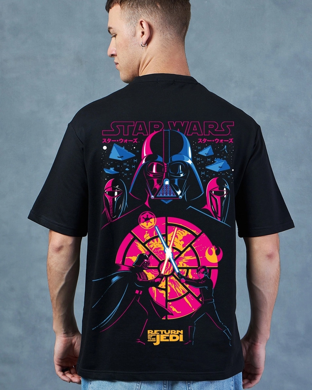 Men's Black Return of Jedi Graphic Printed Oversized T-shirt