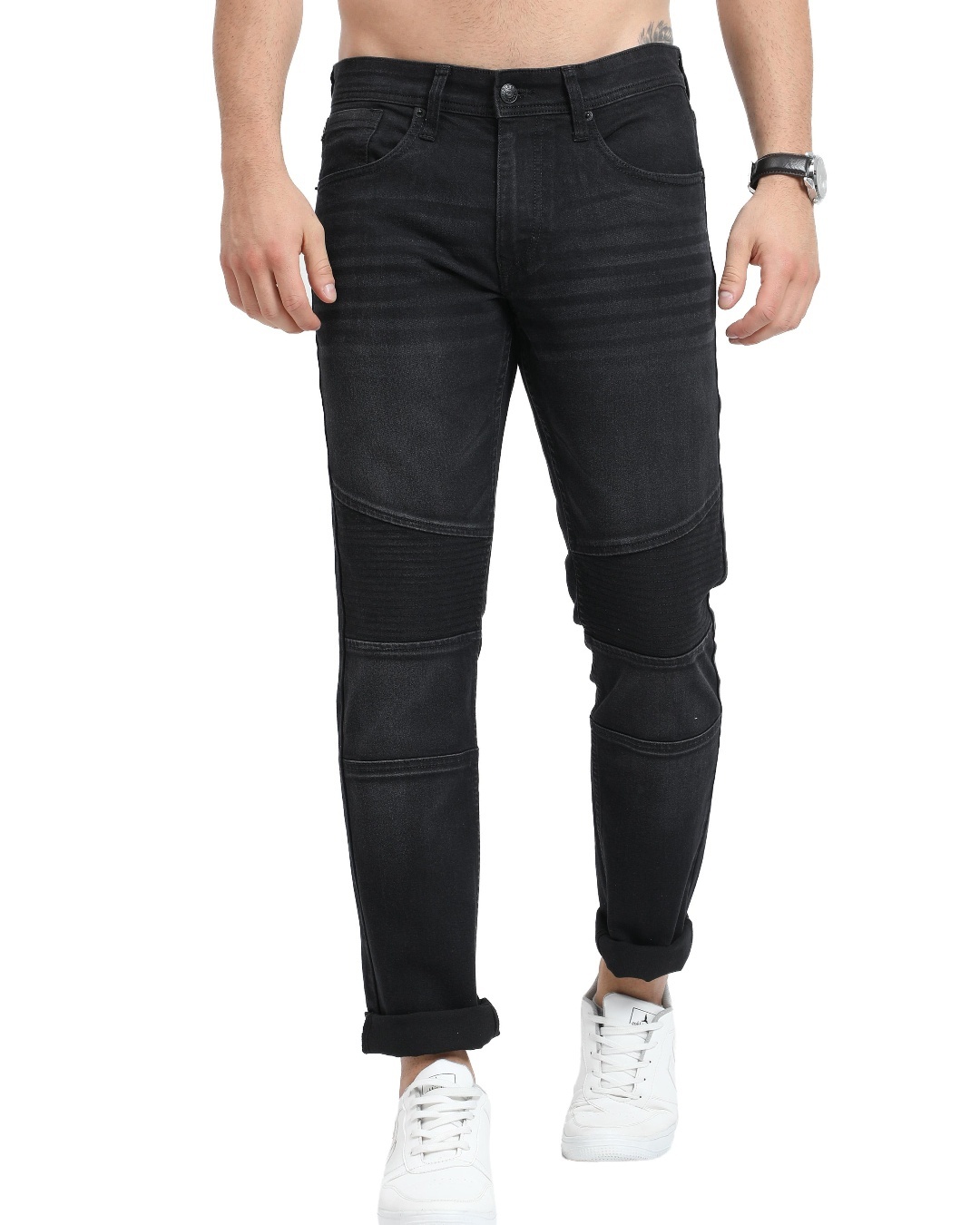 Men's Black Self Design Slim Fit Jeans
