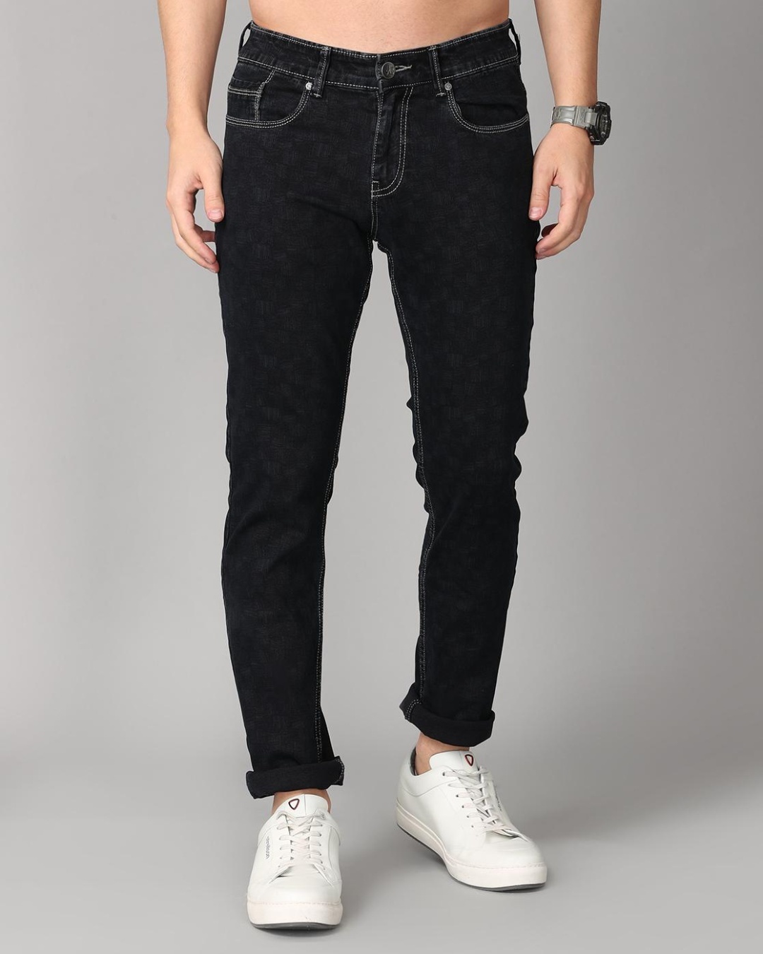 Men's Black Self Design Slim Fit Jeans