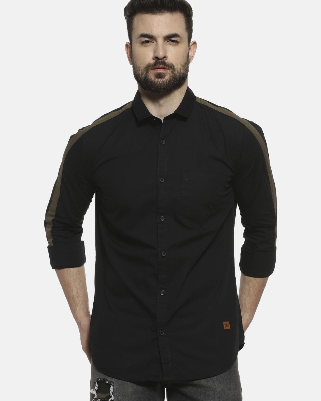 Men's Black Shoulder Striped Shirt