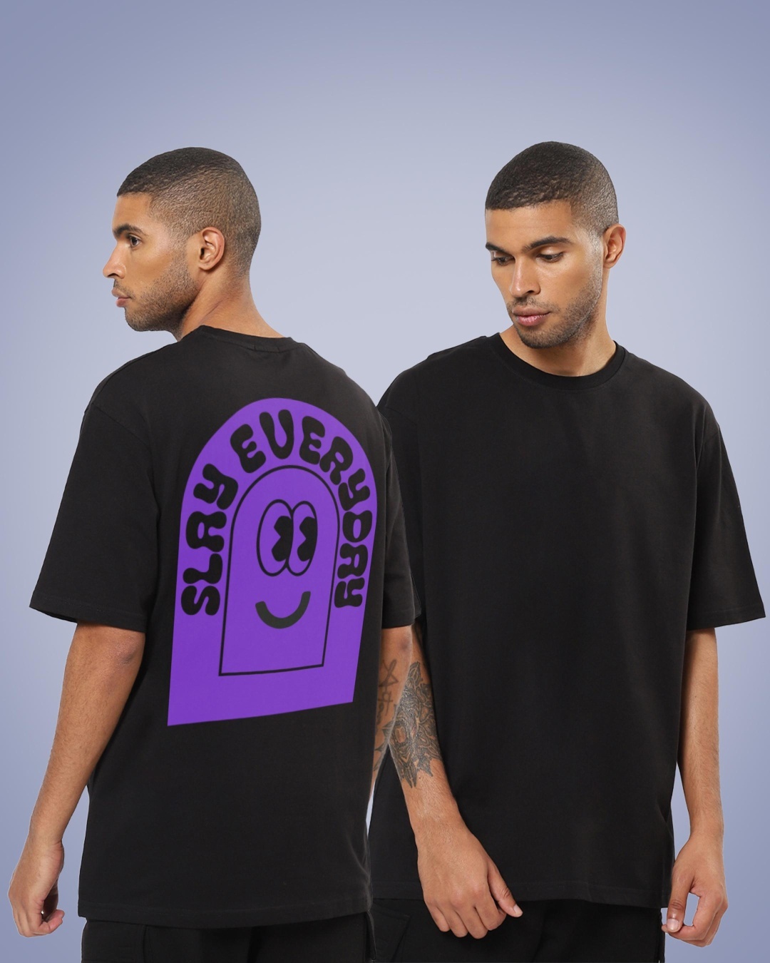 Men's Black Slay Everyday Graphic Printed Oversized T-shirt