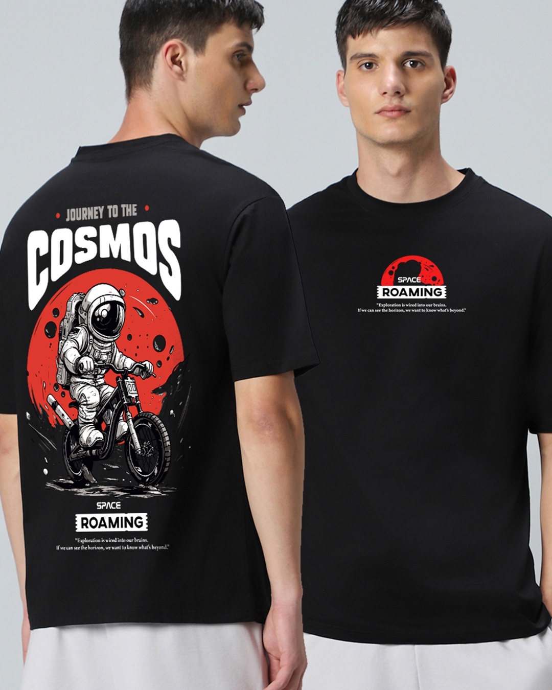 Men's Black Space Roaming Graphic Printed Oversized T-shirt