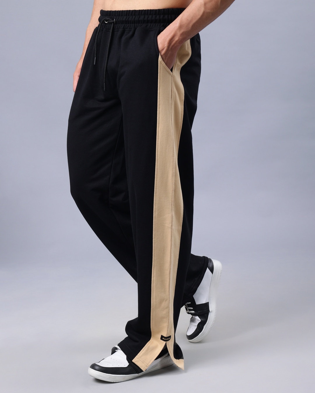 Men's Black Striped Relaxed Fit Track Pants
