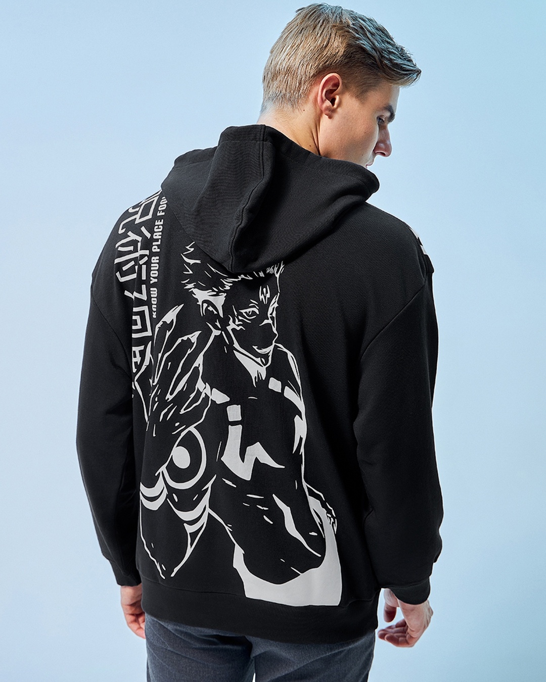 Men's Black Sukuna Graphic Printed Oversized Hoodies