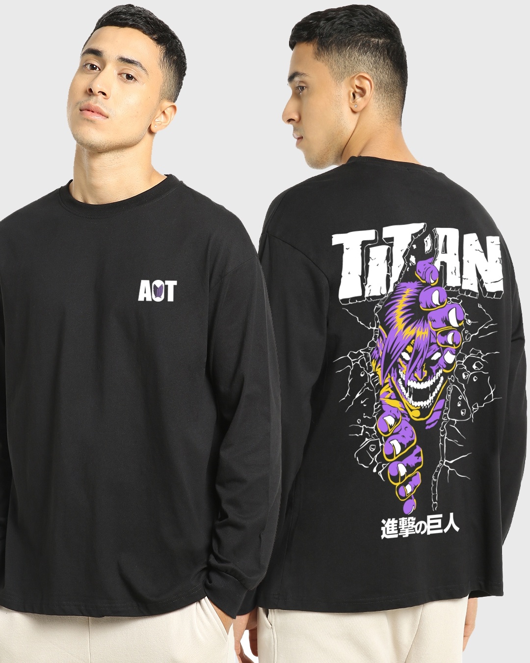 Men's Black The Founding Titan Graphic Printed Oversized T-shirt