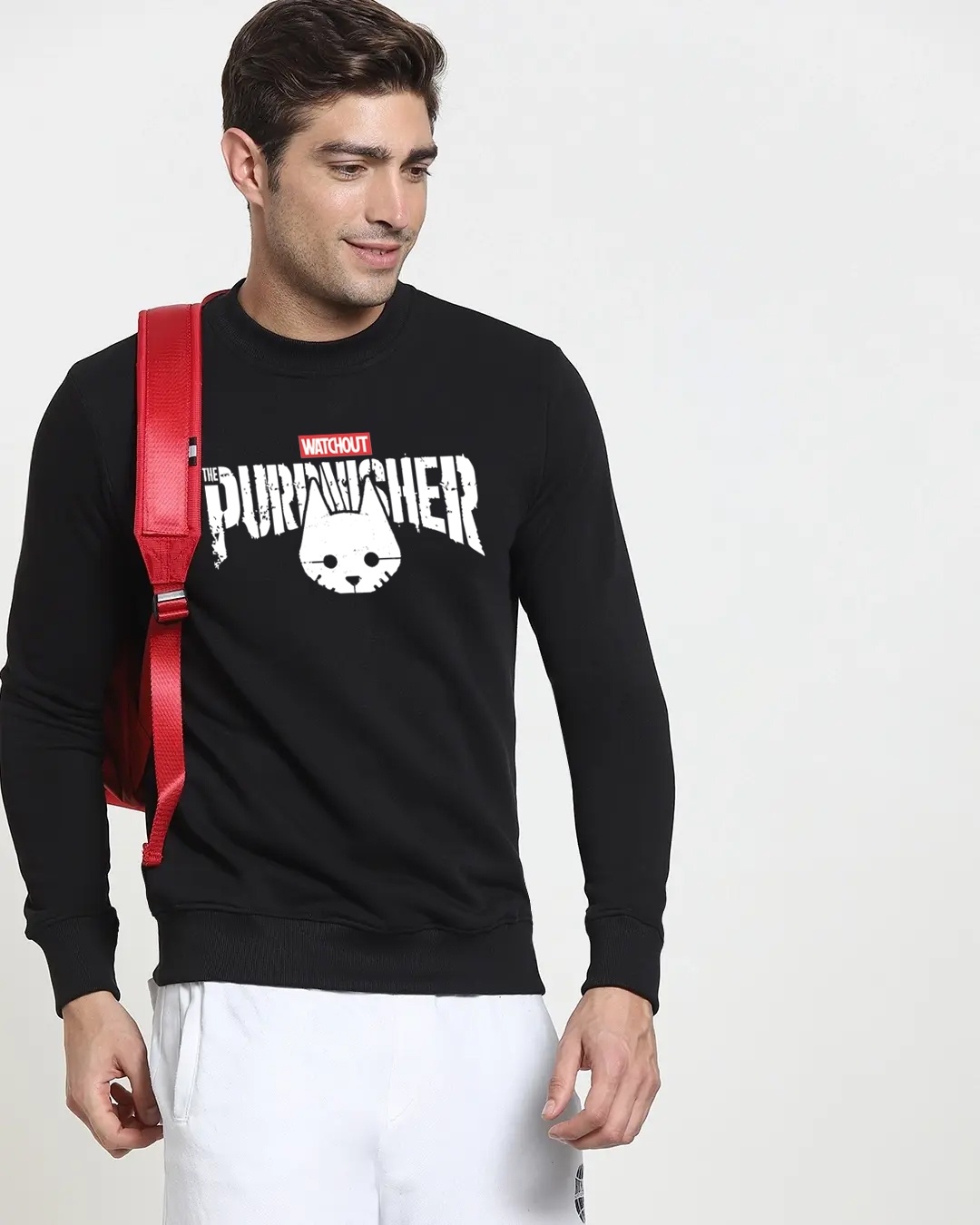 Men's Black The Purrnisher Graphic Printed Sweatshirt