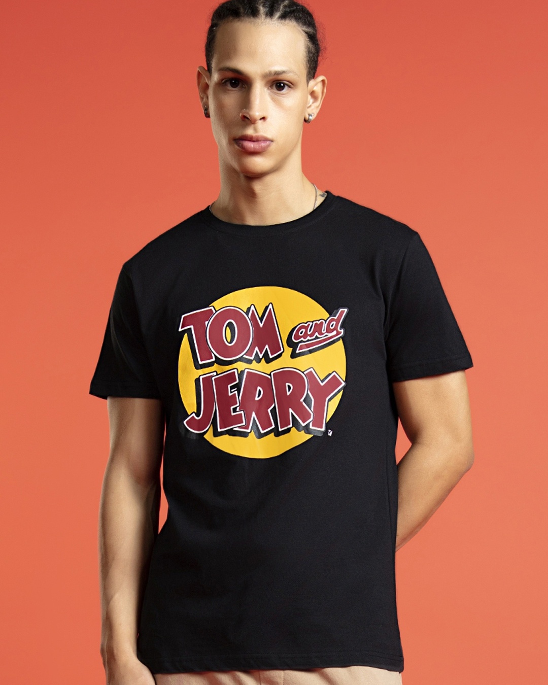 Men's Black Tom & Jerry Graphic Printed Plus Size T-shirt