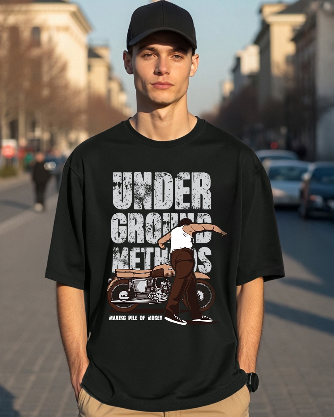 Men's Black Underground Graphic Printed Oversized T-shirt
