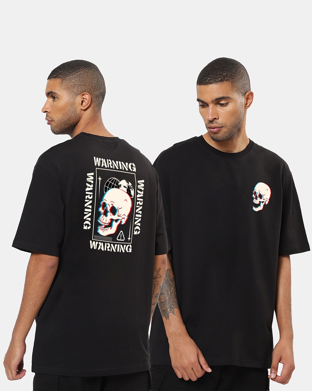 Men's Black Warning Graphic Printed Oversized T-shirt
