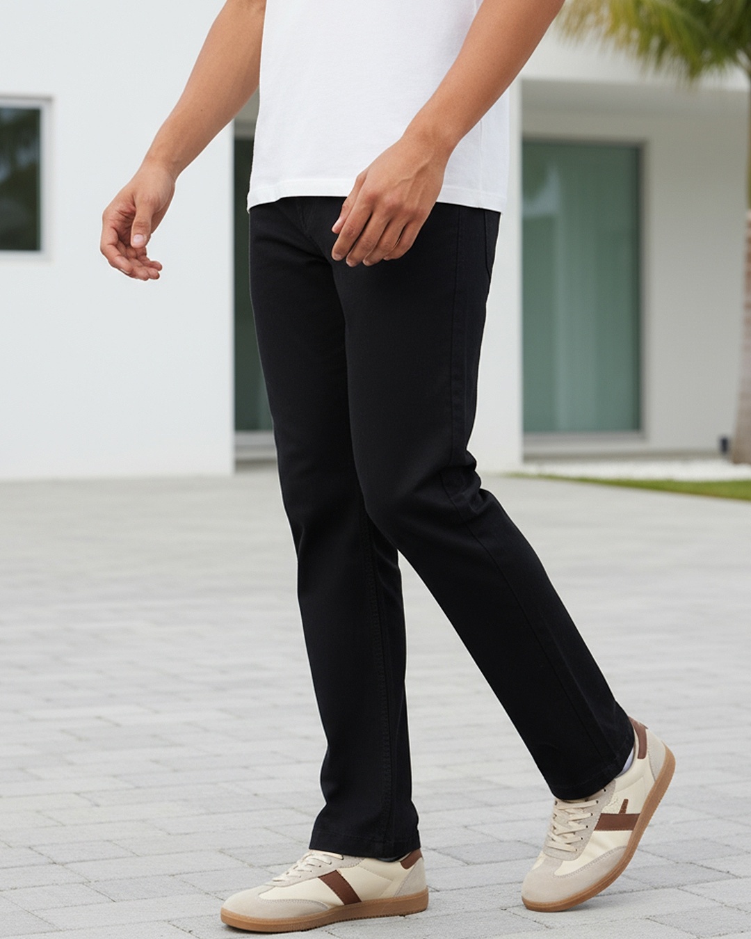 Men's Black Slim Straight Fit Stretchable Washed Mid-Rise Jeans