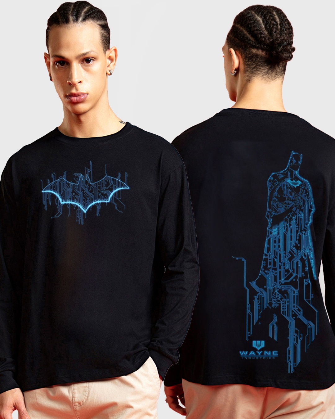 Men's Black Wayne Tech Graphic Printed Oversized T-shirt