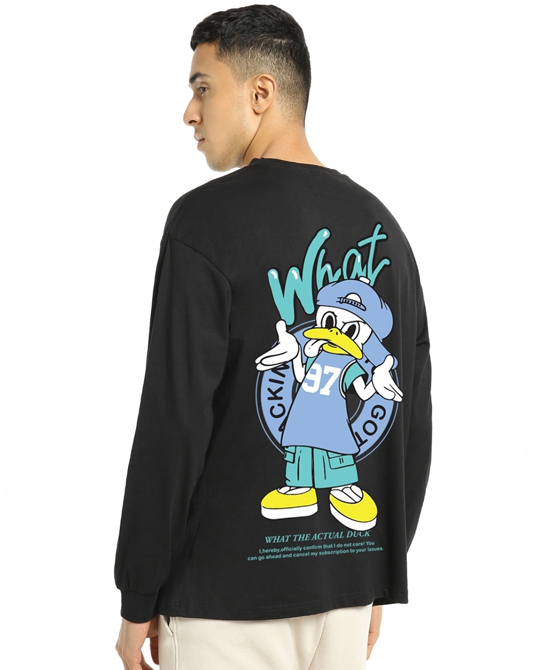 Men's Black What The Duck Graphic Printed Oversized T-shirt