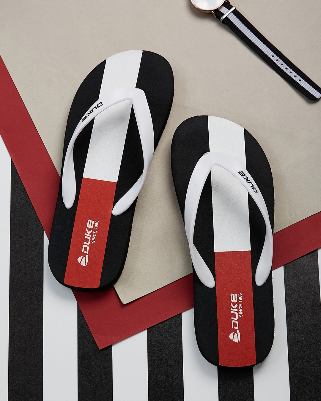 Men's Black & White Color Block Flip Flops