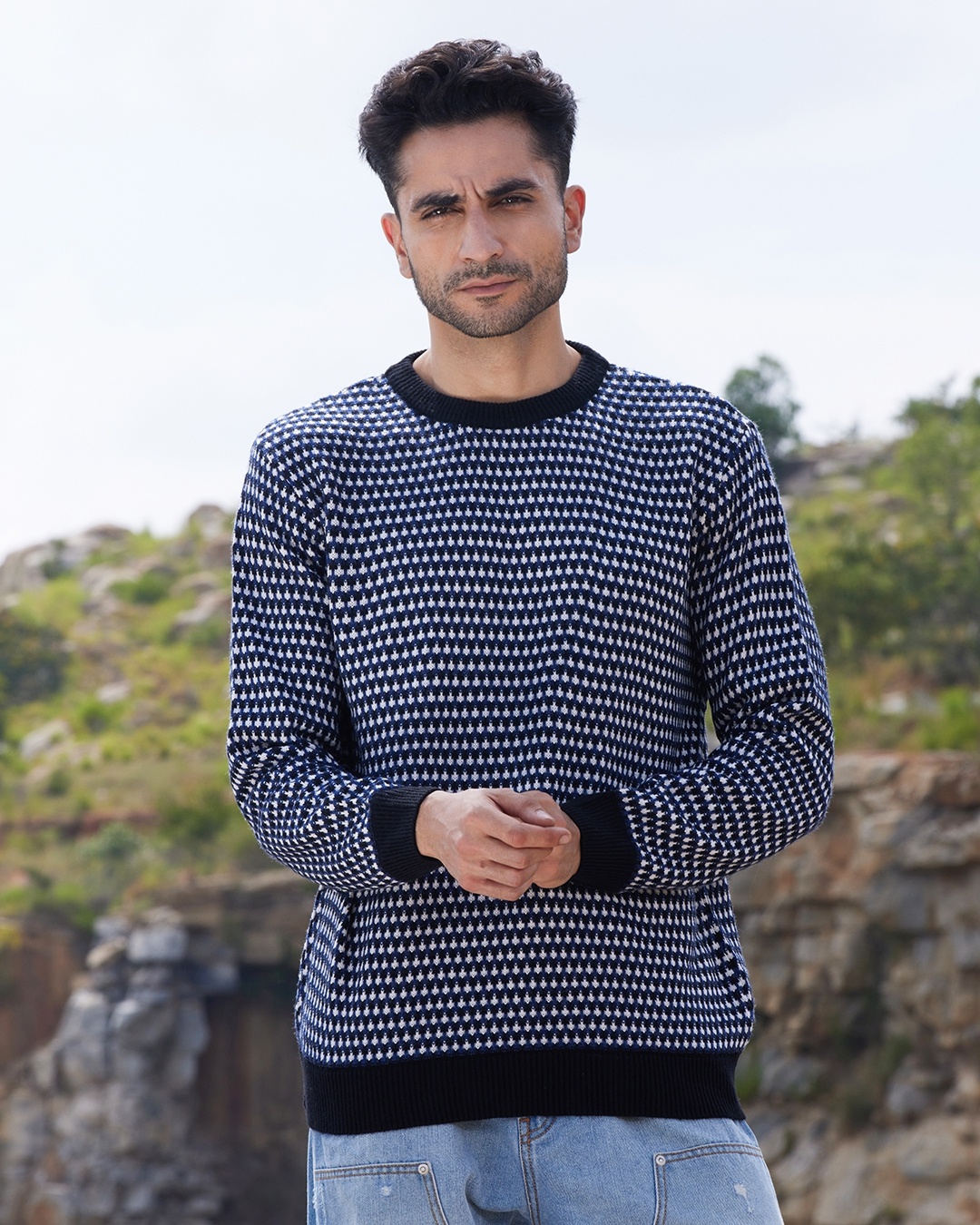 Men's Black & White Sweater
