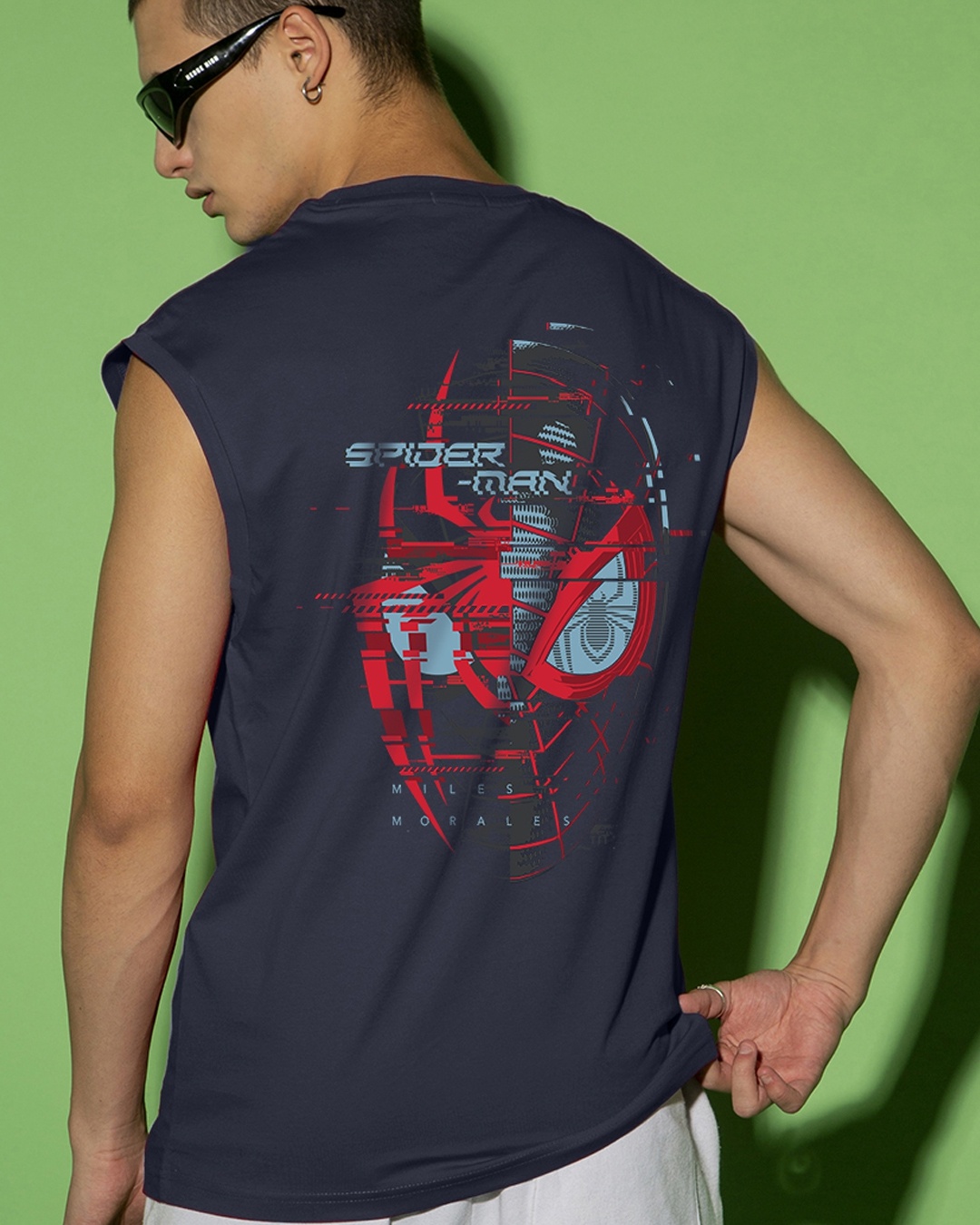 Men's Blue Across The Spiderverse Graphic Printed Oversized Vest