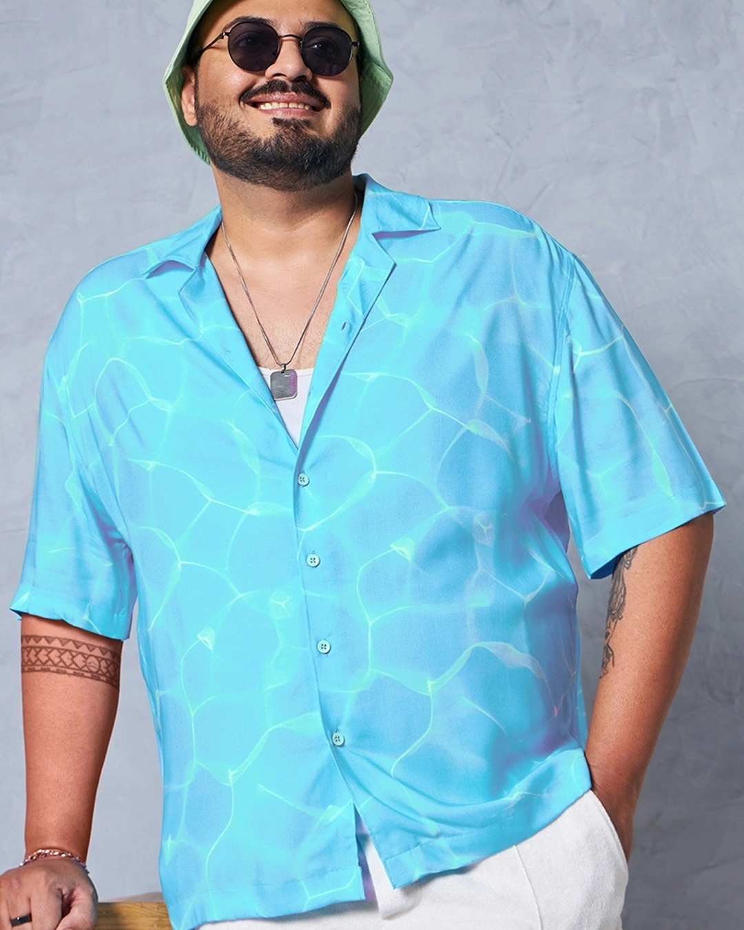 Men's Blue All Over Printed Oversized Plus Size Shirt