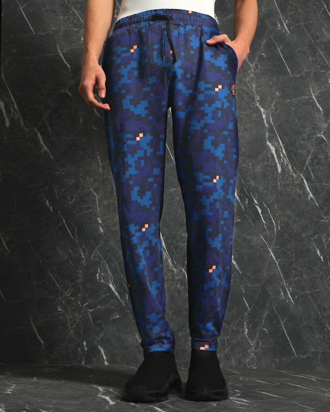 Men's Blue Camo Printed Parachute Pants