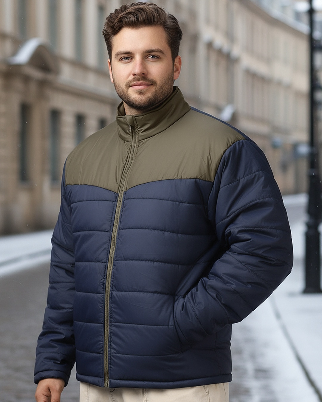 Men's Blue Color Block Oversized Plus Size Jacket