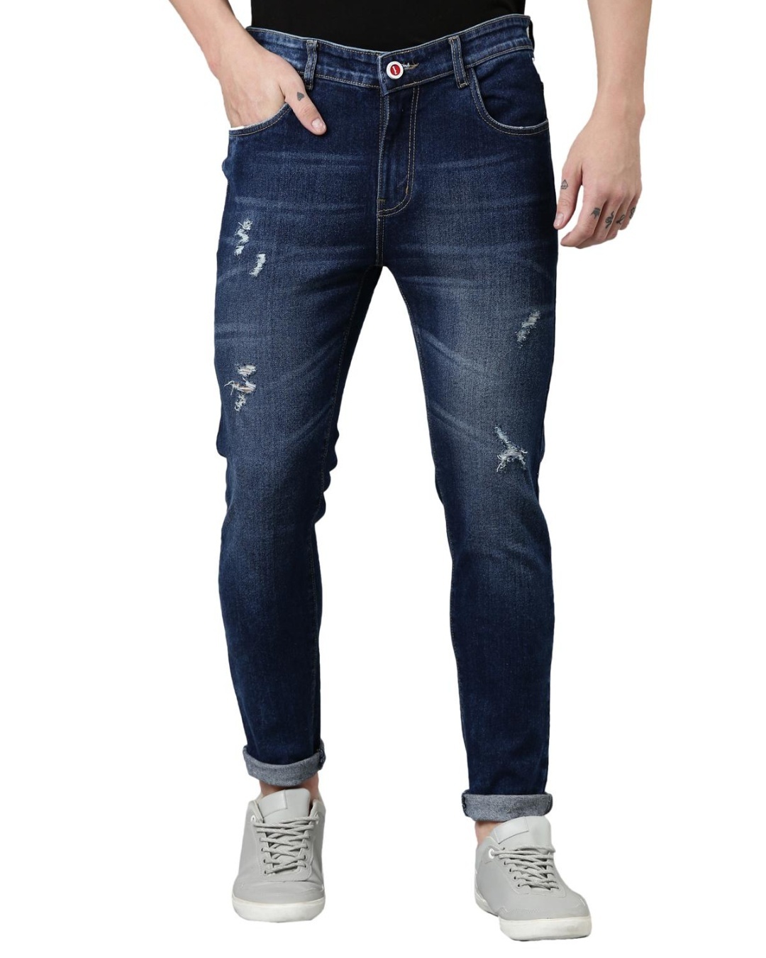 Men's Blue Distressed Slim Fit Jeans