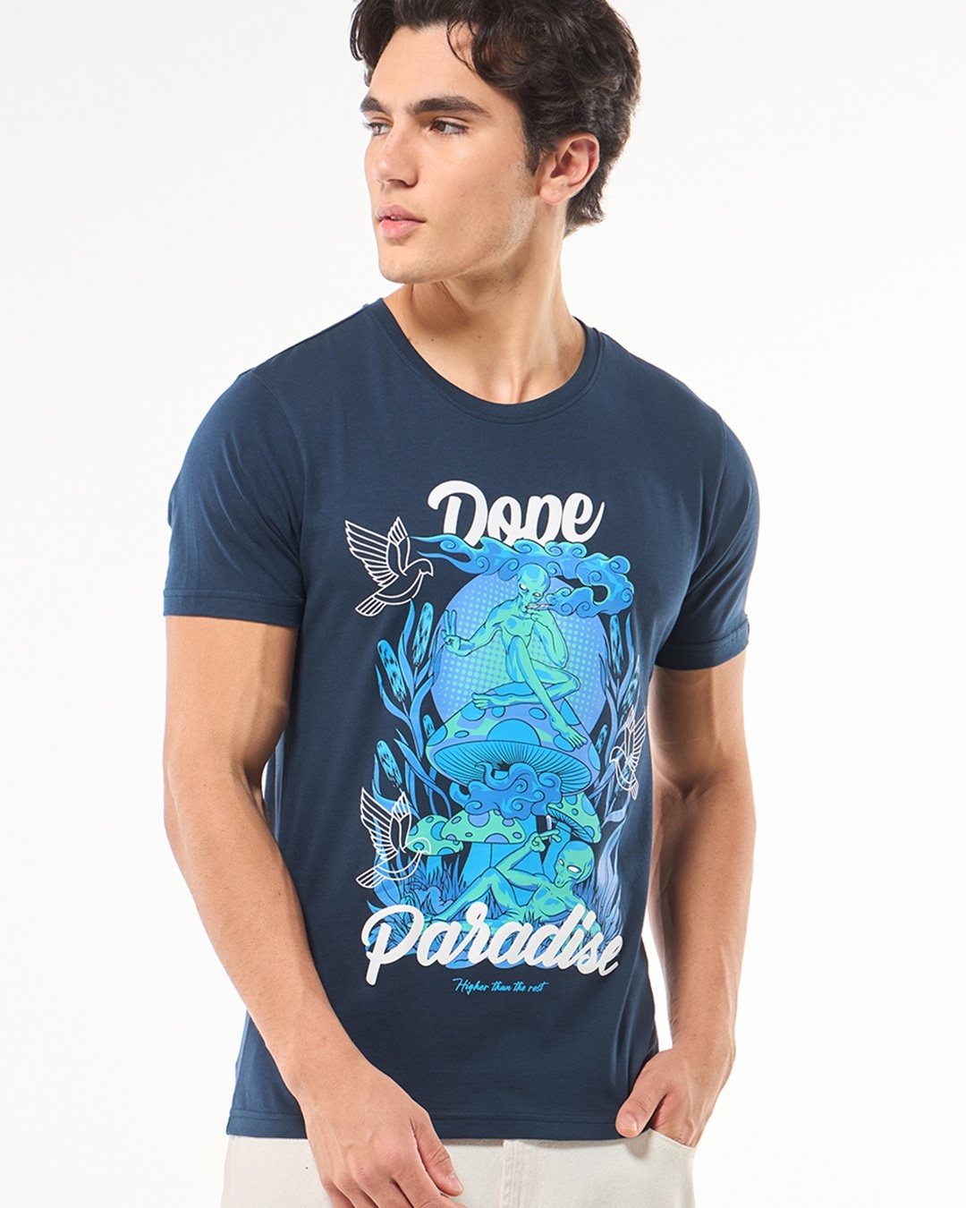 Men's Blue Dope Paradise Graphic Printed T-shirt