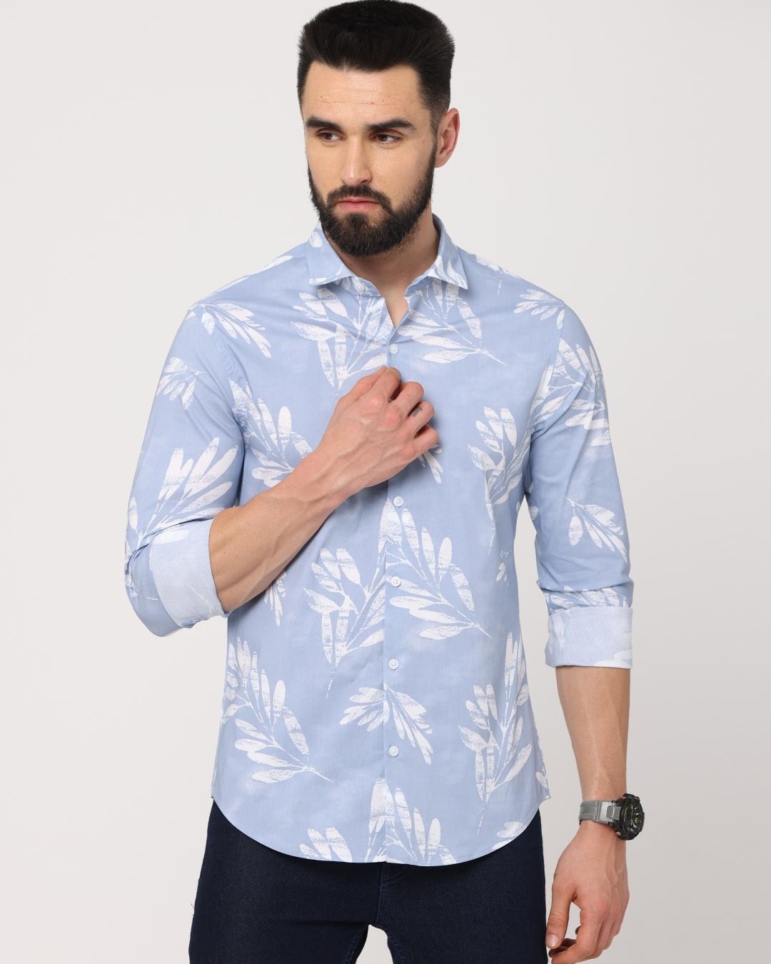 Men's Blue Floral Printed Slim Fit Shirt