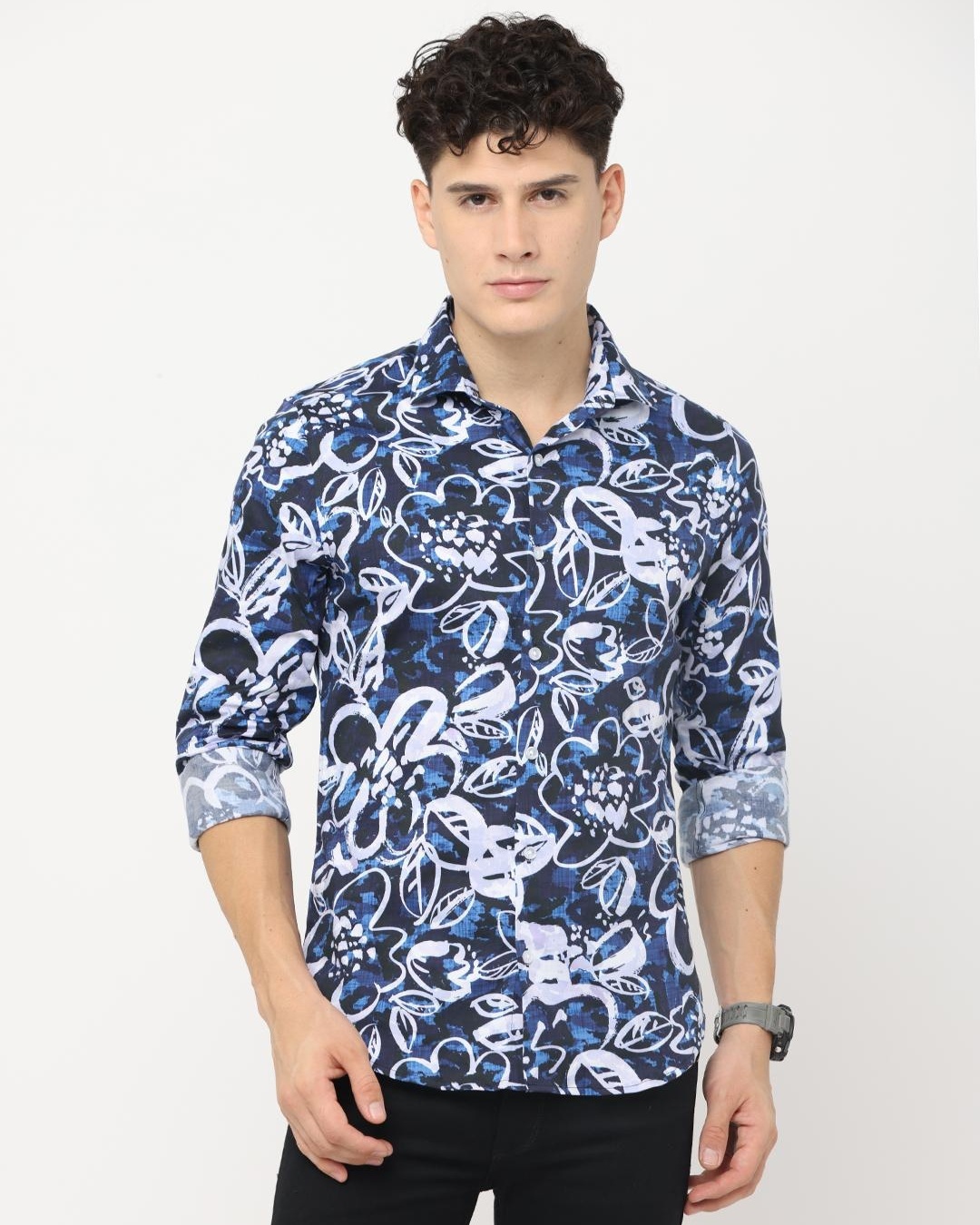 Men's Blue Floral Printed Slim Fit Shirt