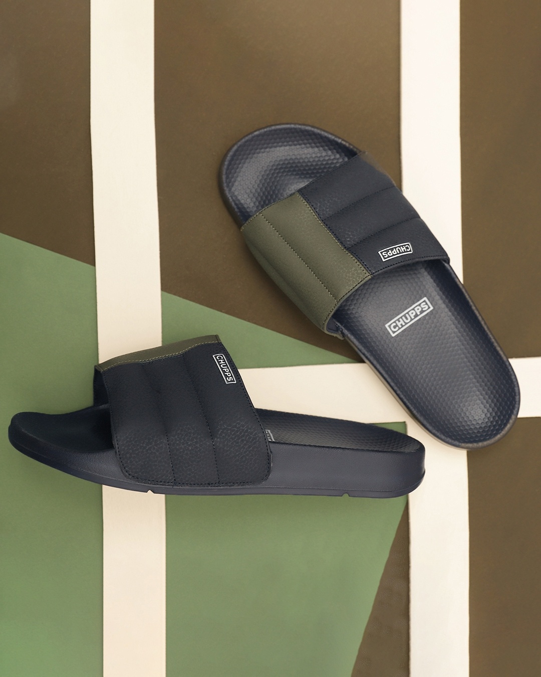 Men's Blue & Green Color Block Sliders