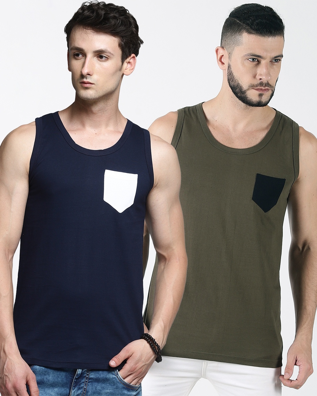 Pack of 2 Men's Blue & Green Color Block Vest