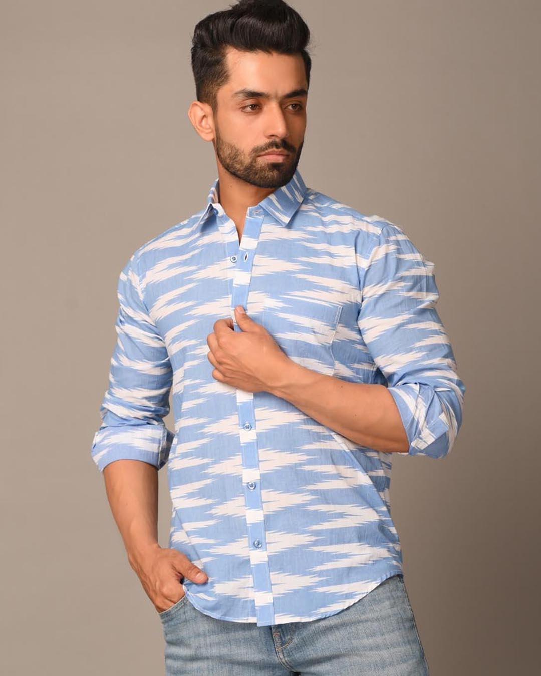 Men's Blue Ikat Printed Shirt