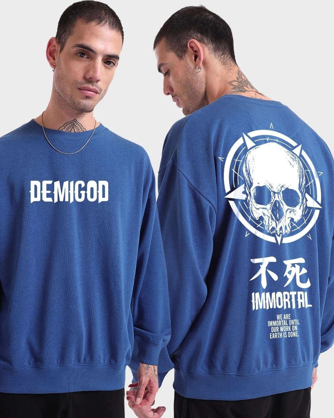 Men's Blue Immortal Graphic Printed Oversized Sweatshirt